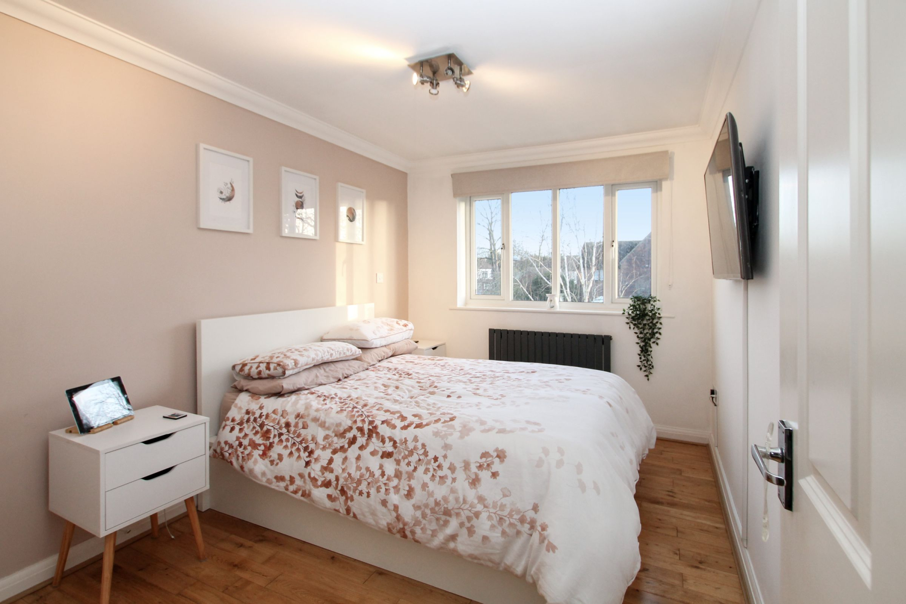 The open plan room benefits from engineered wood flooring, whilst the kitchen has a range of wall and base units and space for the usual appliances. Both bedrooms will accommodate a double bed and the main bedroom boasts a built in wardrobe. The modern white bathroom suite has a panelled bath with shower over, a pedestal wash hand basin and low level WC. Externally the property has an allocated parking bay which is accessed via an electronic gate, you will also find some communal lawned areas.