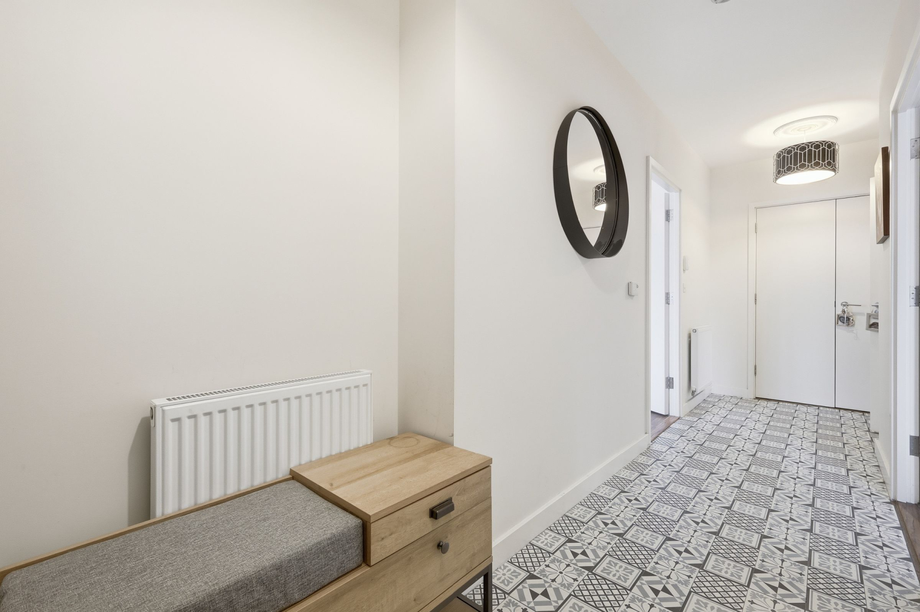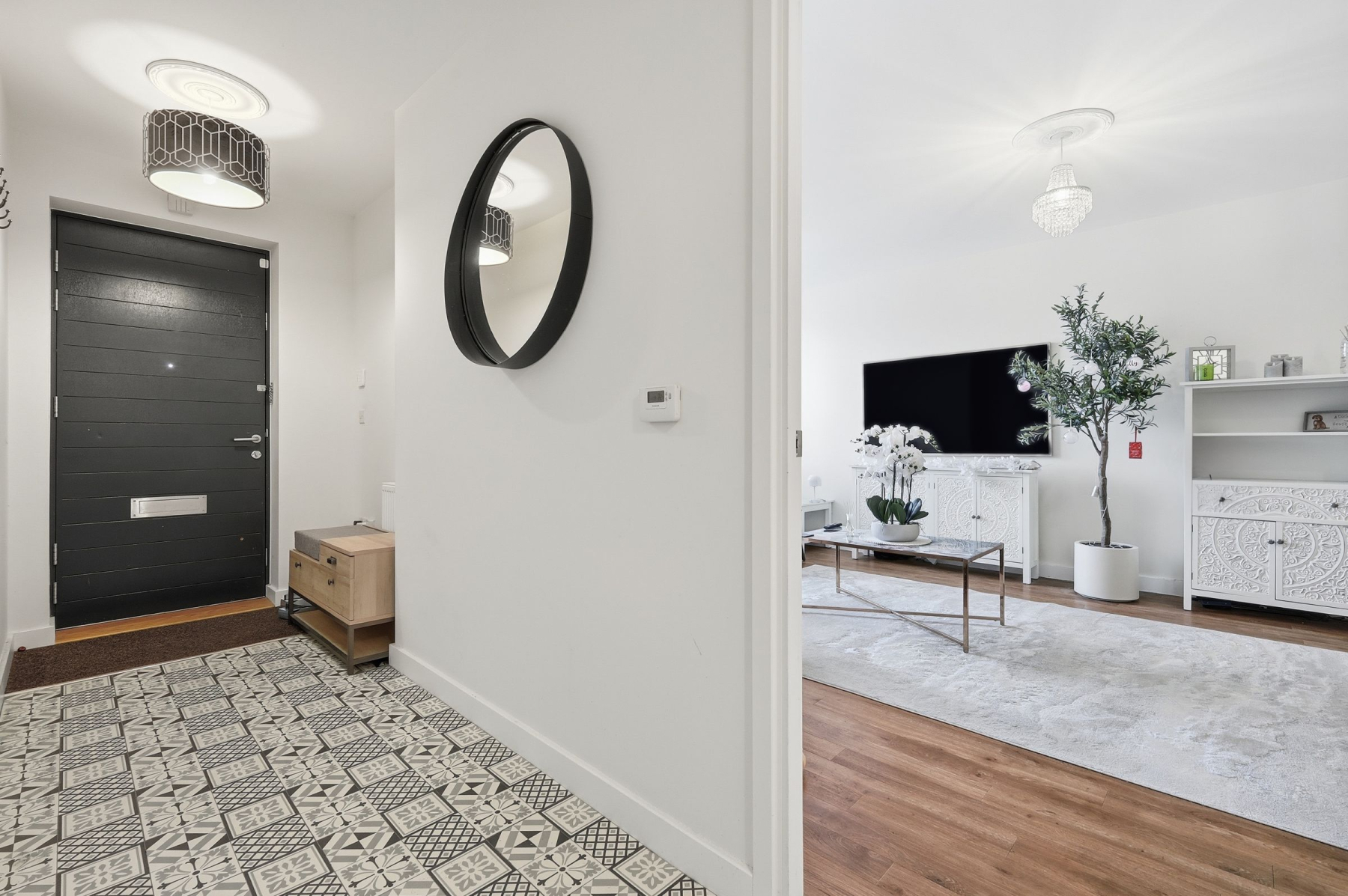Step inside to a beautifully designed hallway, instantly impressive with brand new, eye-catching Mozaic patterned black and white flooring. This welcoming space is generously sized, perfect for statement furniture or additional storage.