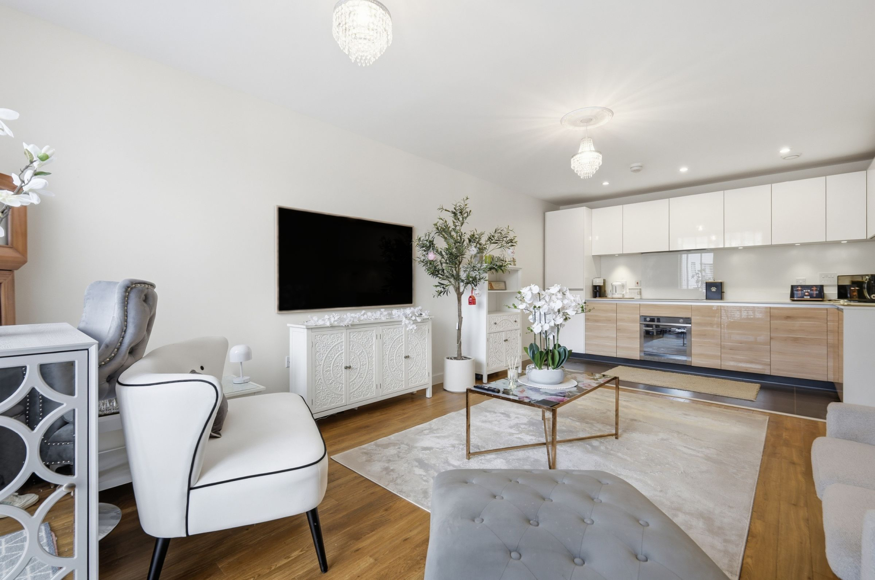 The heart of the home is the stunning open-plan kitchen, living, and dining area, a versatile space crafted for modern lifestyles. The kitchen is a chef's delight, boasting a suite of integrated appliances by the highly sought-after brand Smeg, including an induction hob, oven, fridge/freezer, and dishwasher.