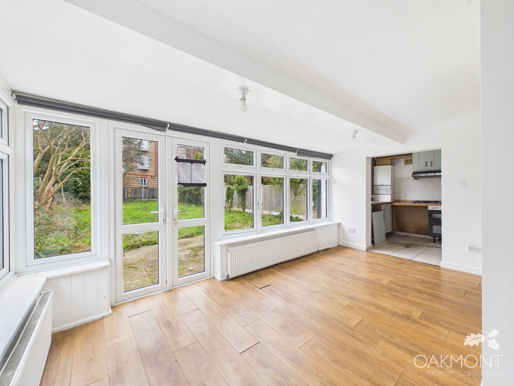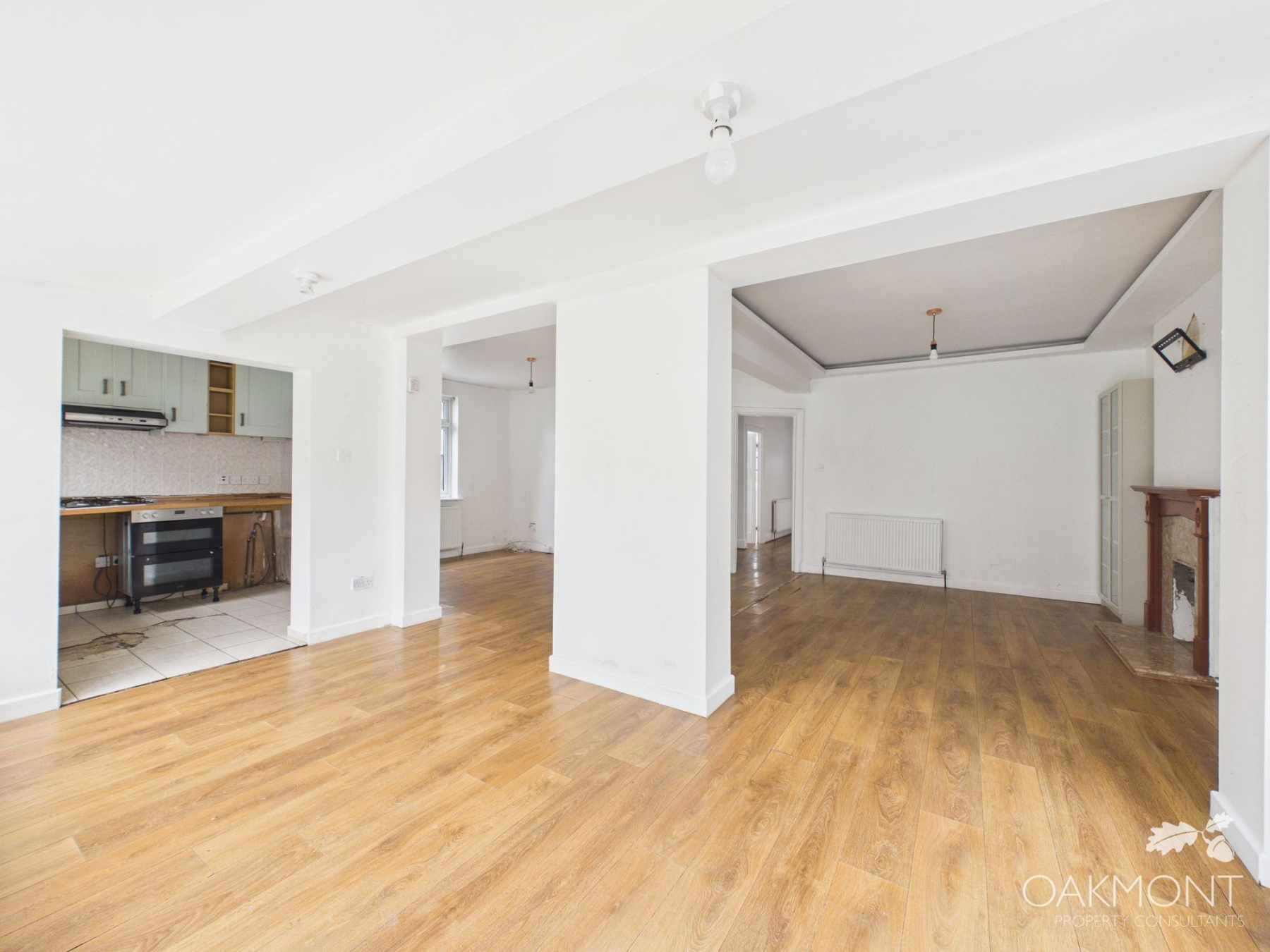 Inside, the accommodation is well-proportioned with bright lounge open plan living/dining/kitchen space with patio doors leading to the sizable rear garden which is ideal for families wanting to spend time together or entertaining guests. The kitchen needs modernisation/repair however there is ample space for base and eye level units and worktops.
