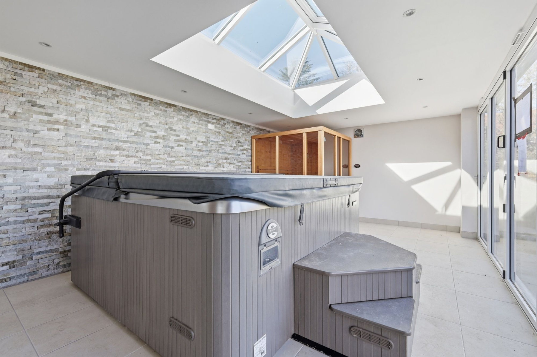 Large double glazed roof lantern, double glazed bi-fold doors to flank leading to rear garden, tiled flooring, smooth ceiling with inset spotlights.