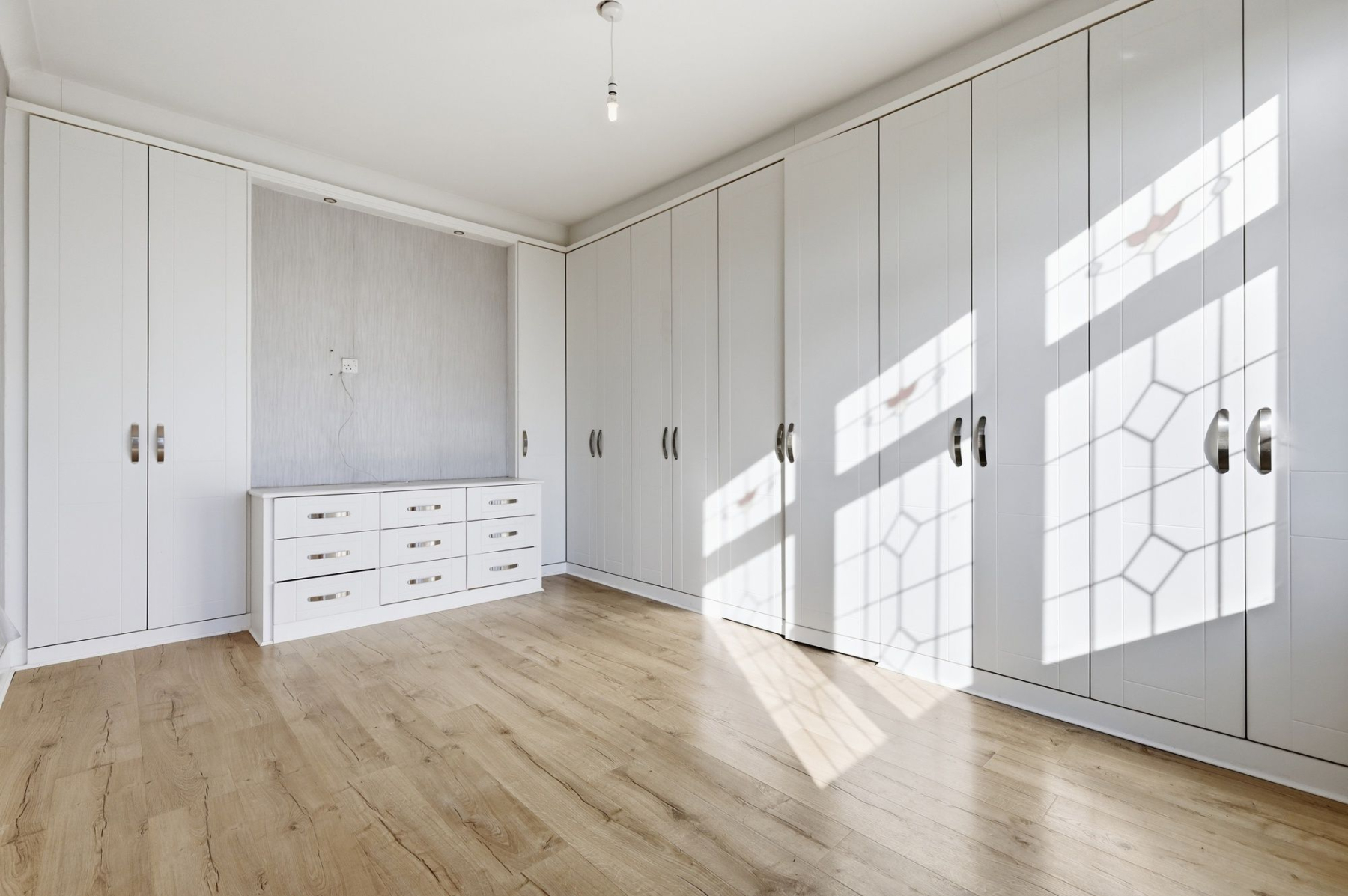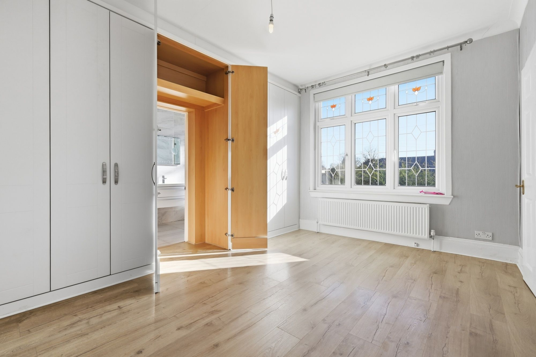 BEDROOM: Double glazed window to rear, fitted wardrobes with bridging unit over, radiator, wood flooring, smooth ceiling with cornice coving, door to: EN-SUITE: Obscure double-glazed window to rear. Suite comprising: shower cubicle, vanity wash hand basin with mixer tap and cupboard under, low level wc with push flush. Complementary tiling, smooth ceiling.