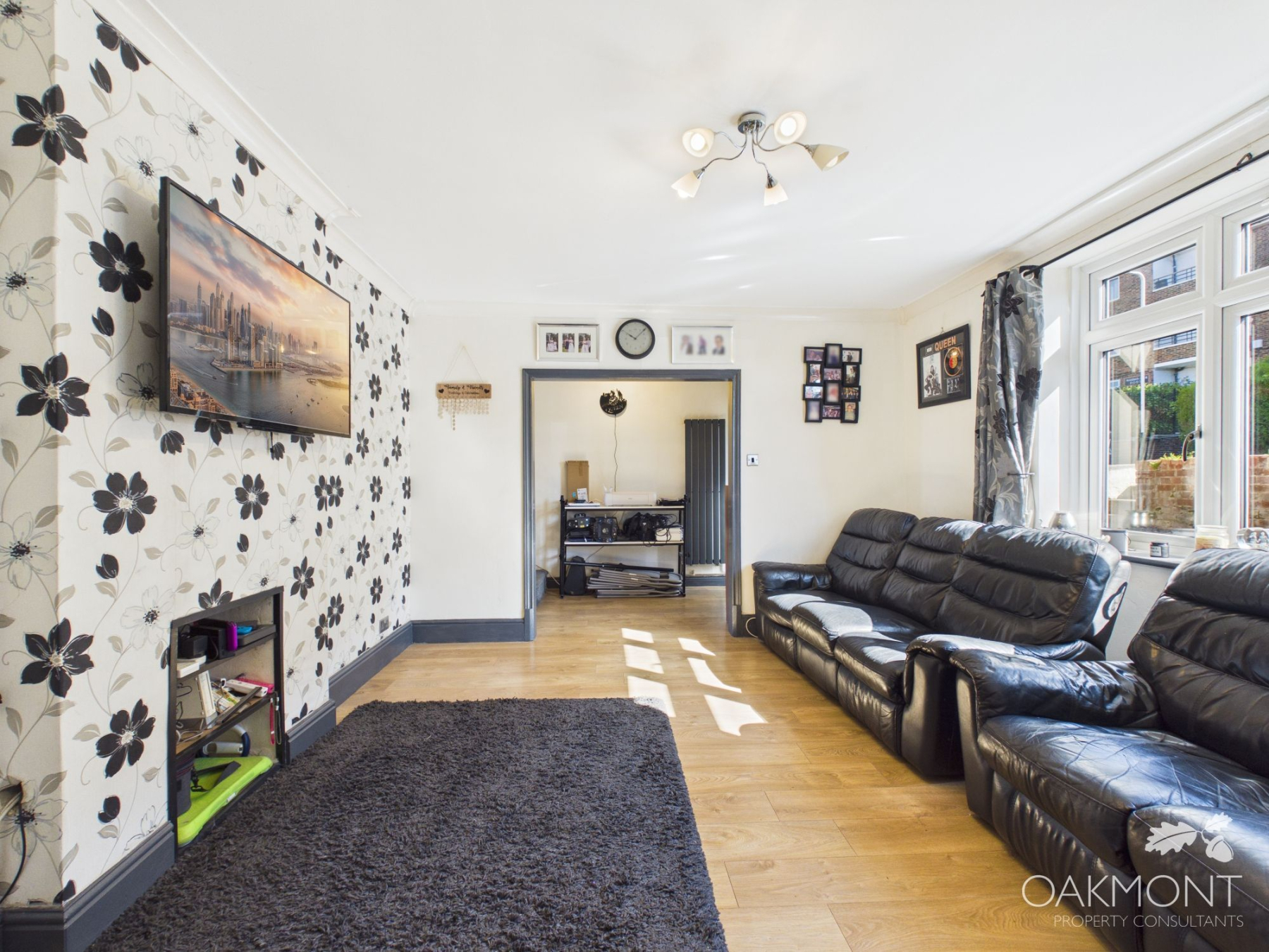 The lounge is reached via a large opening from the hallway making the space feel more open even though the lounge is a generous size with windows to the front.