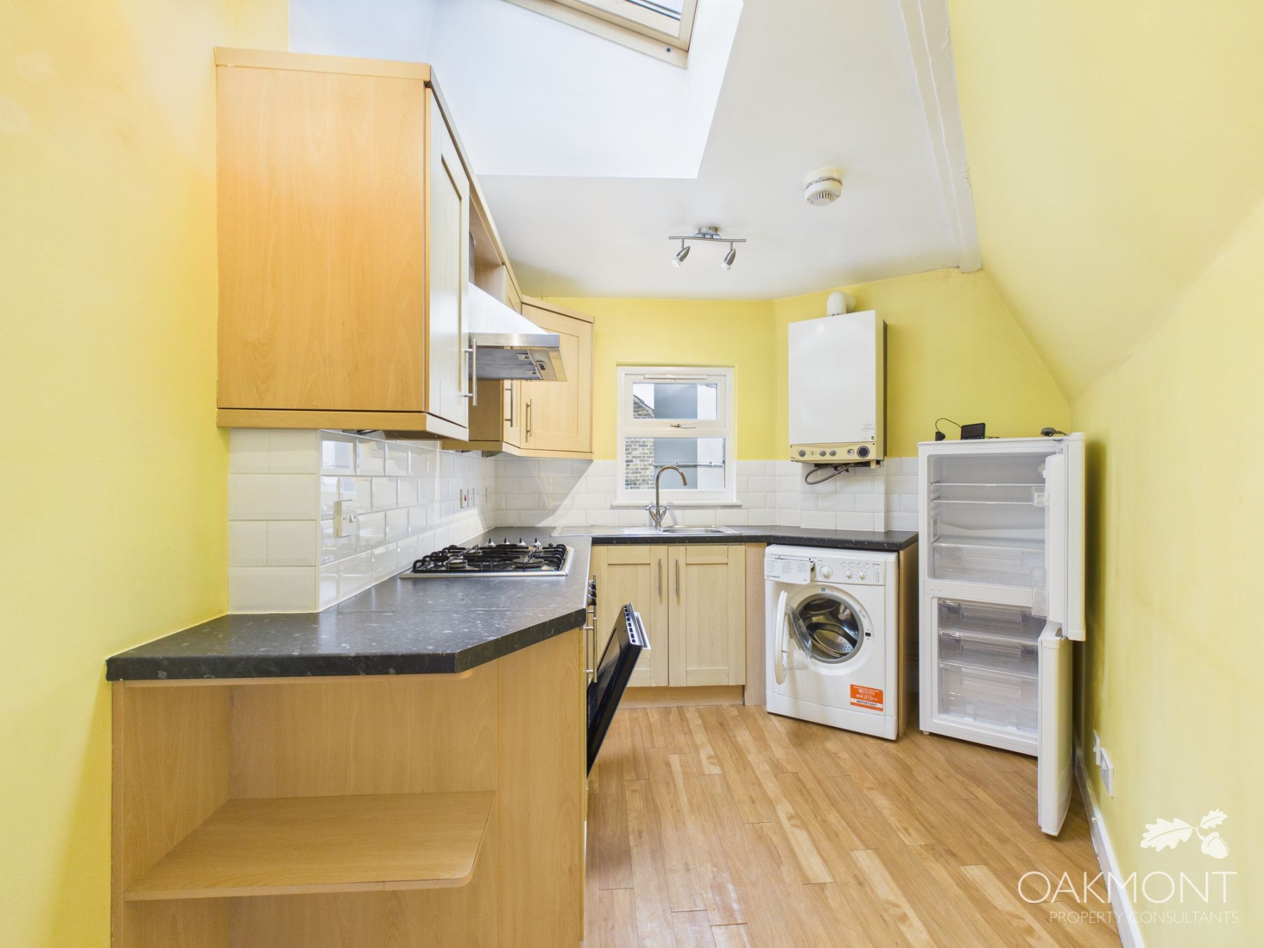 There is a separate kitchen area with window to side, skylight, base, eye level units, worktop space, sink/drainer, oven and hob and space for appliances.